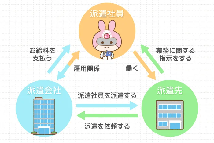 仕組みは複雑に見えますが、間に派遣会社が入ってサポートしてくれるため、安心して働き始められるのが魅力です。